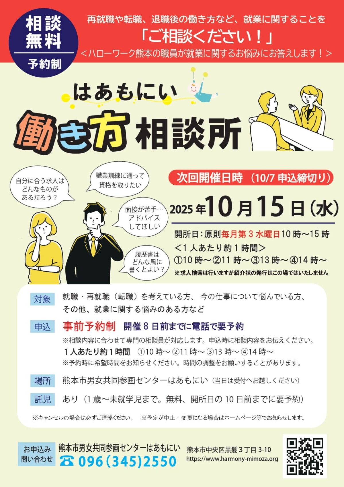 仕事の不安や働き方の不安など、「働くこと」に関する無料相談会を