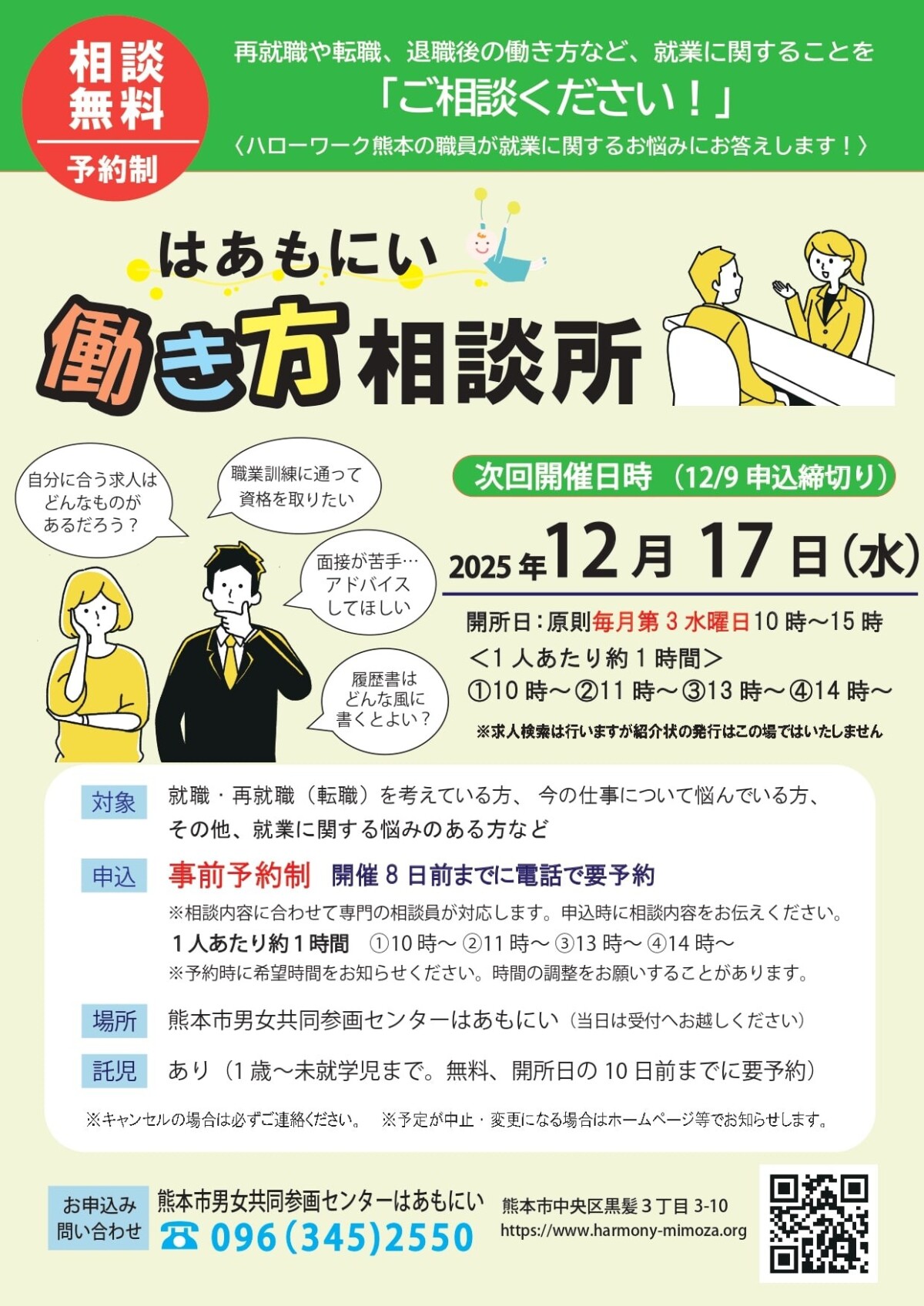 仕事の不安や働き方の不安など、「働くこと」に関する無料相談会を