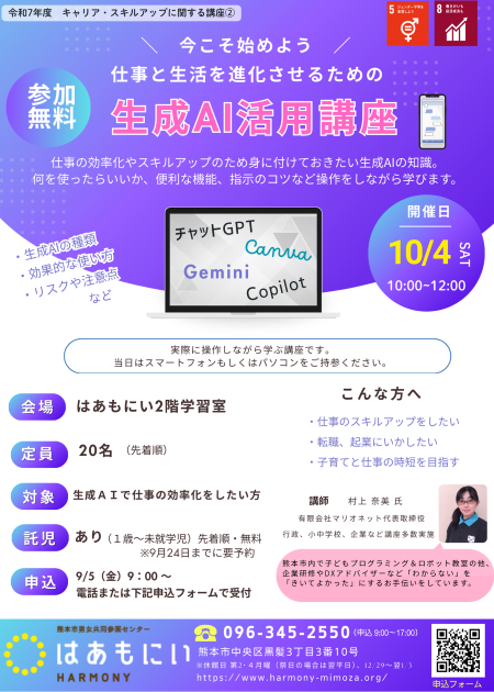 【託児】あり(1歳~未就学児)先着順・無料 ※9月24日までに要予約