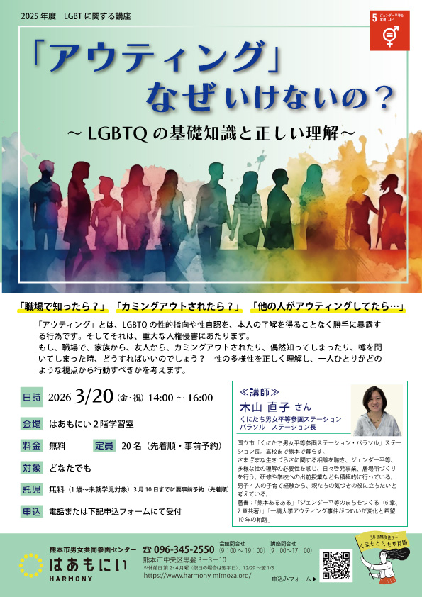 会場:熊本市男女共同参画センターはあもにい 2階学習室