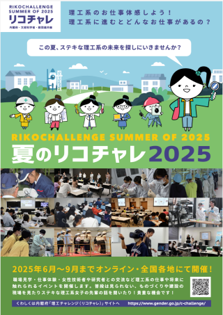 「夏のリコチャレ2025」開催のお知らせ お知らせ 理工系分野のお仕事を体験してみませんか?「夏のリコチャレ2025」開催のお知らせ 内閣府・文部科学省・日本経済団体連合会の主催により、女子中高生等を対象とした理工系イベント「夏のリコチャレ2025~理... 2025年7月1日
