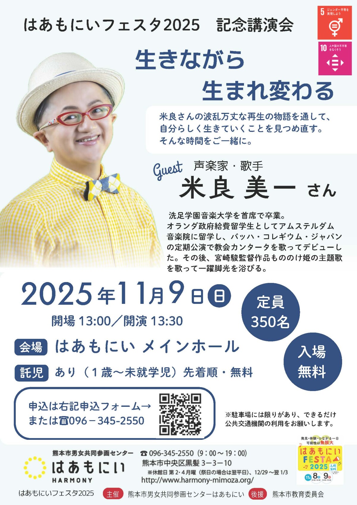 歌手・米良美一氏が、病気との闘いや成功と挫折を通して学んだ「ありのままの自分を受け入れる大切さ」と、豊富な経験談と逆境を乗り越える力や前向きに生きるためのヒントを、参加者へ届ける。