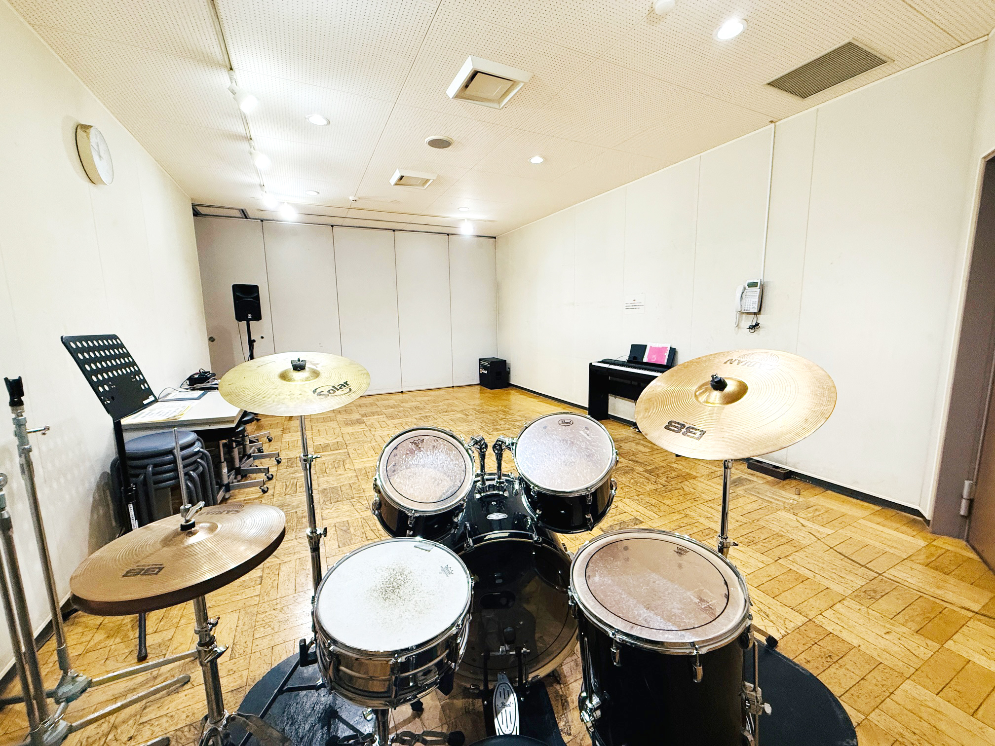 バンド演奏のための防音室。ドラムやマイクを利用できます。
